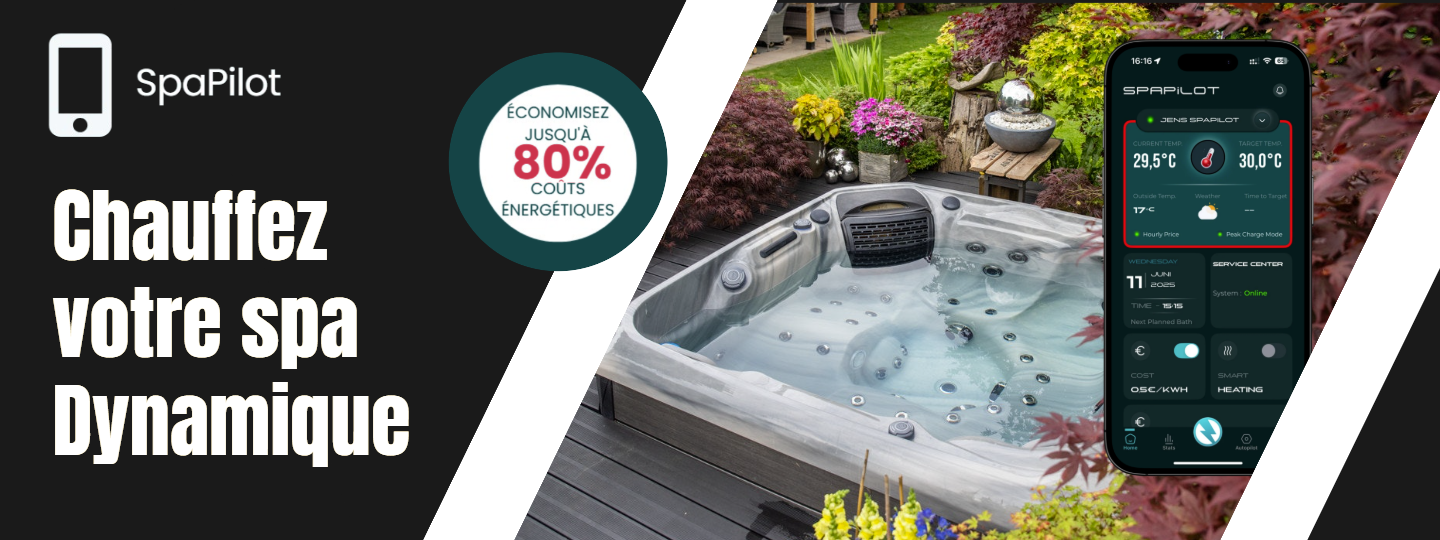 En combinant l'analyse facile de l'eau avec Spapilot, vous bénéficiez d'une vision complète de votre spa, ce qui simplifie et clarifie l'entretien. Pour une durée limitée, bénéficiez d'une réduction de 50 € à l'achat des deux produits (cette réduction sera automatiquement appliquée lors du paiement).